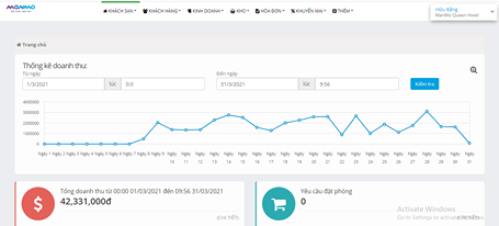 Hiện ra màn hình chính phần mền quản lý hiện sơ đồ doanh thu theo ngày tháng năm