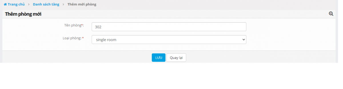 - Sưả cài đặt phòng: Thay đổi tên phòng và loại phòng