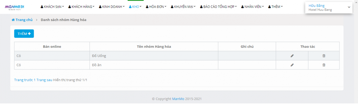 Chọn thêm khi quý vị muốn thêm nhóm hàng hóa mới. Mặt khác có thể sửa hoặc xóa nhóm hàng hóa ở mục "Thao tác"