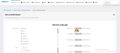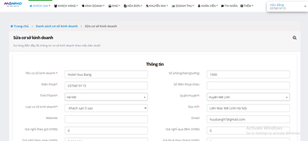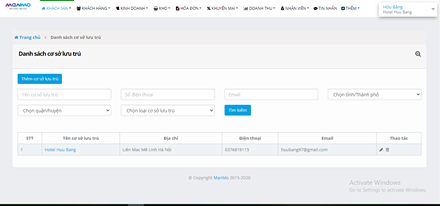 bước 1 bạn vào menu cho khách sạn và chọn danh sách cơ sở lưu trú