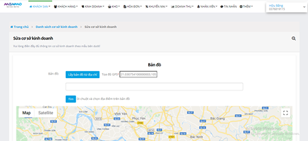 + Điền địa chỉ chi tiết, rồi chọn “Tìm” để hiện điểm cắm của cơ sở lưu trú trên bản đồ. Nếu vị trí điểm cắm chưa chính xác, có thể phóng to, chọn điểm cắm để chuyển vào đúng vị trí.